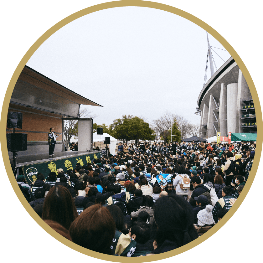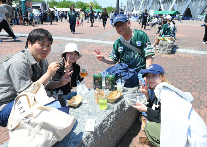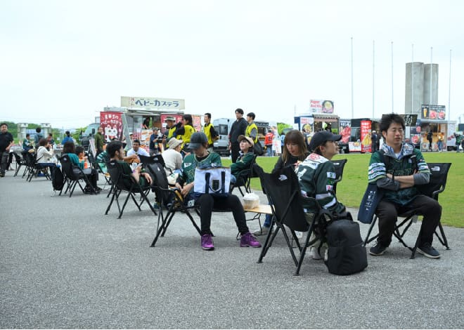 試合を観るのはもちろん、イベントやグルメを目当てに来場される方も非常に多いのが特徴なんです。