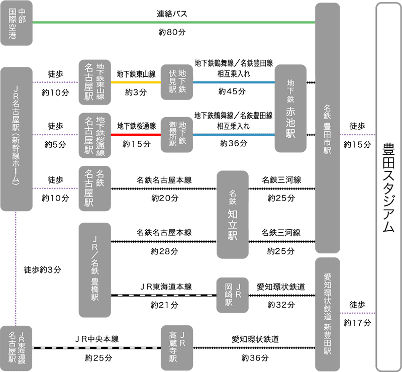 トヨタ本社B/T⇔愛知県状鉄道新豊田駅⇔豊田スタジアムの